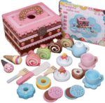 البوكس بتصميم أنيق يحتوي على مجموعة من الكيك والحلويات الخشبية 🌱.